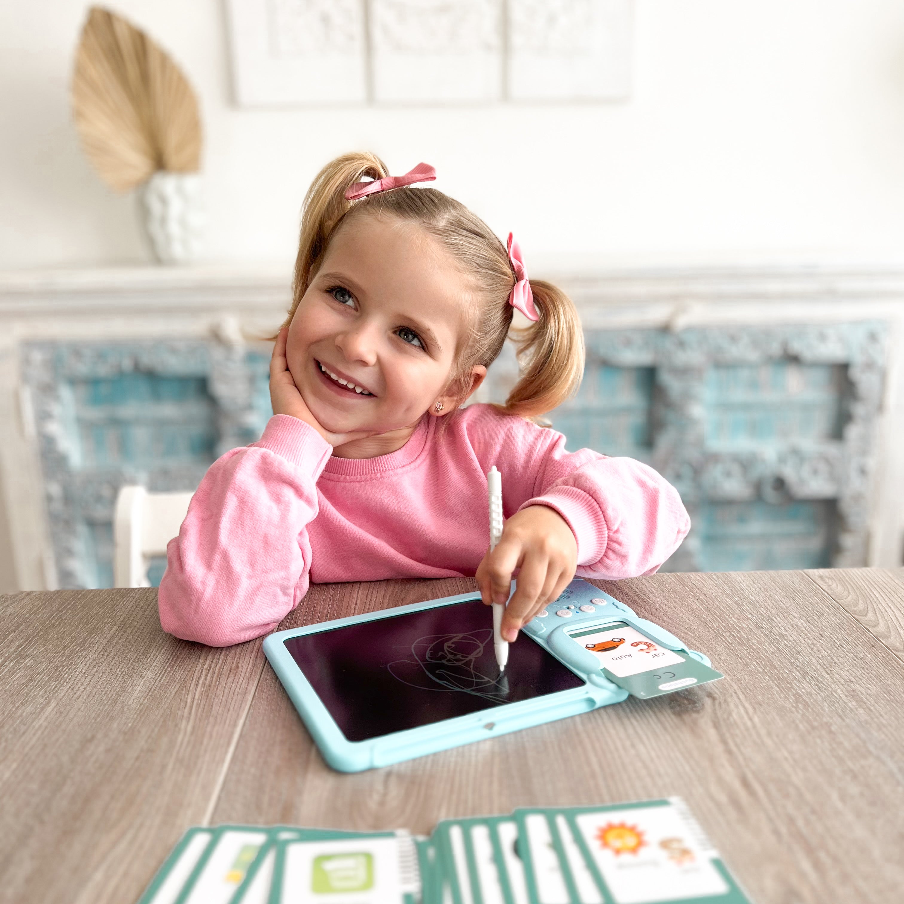 Das Tablet verfügt über ein robustes LCD-Display, das lebendige und klare Farben zeigt. Mit nur einem Knopfdruck lässt sich das Display leicht löschen, sodass immer wieder neue kreative Ideen umgesetzt werden können.